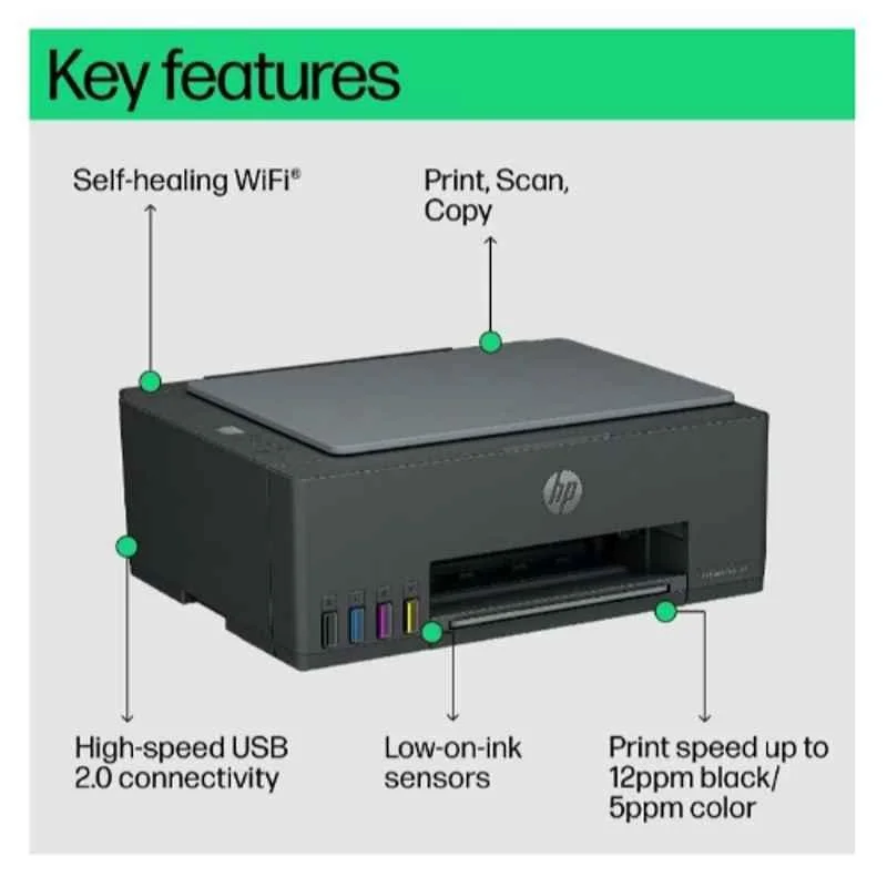 Upgrade Your Home or Office Printing Setup with the Hp Smart Tank 581 Wi-Fi All-In-One Colour Ink Tank Printer. This Versatile Printer Combines Affordability & Efficiency, Making it An Ideal Choice for Families, Students, or Small Businesses. Equipped with Hp’S Innovative Ink Tank System, the Smart Tank 581 Delivers Exceptional Quality Prints at An Ultra-Low Cost Per Page, Ensuring You Get More Out Of Each Refill. Whether You’re Printing Documents, Colourful Graphics, or Vibrant Photos, This Printer Produces Sharp, Vivid Results Every Time. Featuring Easy Wireless Connectivity, You Can Print Directly From Your Smartphone, Tablet, or Computer Using the Hp Smart App. Set Up & Manage Printing Tasks Effortlessly, Even When You’re On the Go. the Smart Tank 581 Supports A Variety Of Paper Sizes & Types, Making it Suitable for Various Printing Needs. with Its Reliable Performance & User-Friendly Design, the Hp Smart Tank 581 Streamlines Your Printing Experience. Say Goodbye to Frequent Cartridge Replacements & Hello to Uninterrupted Printing with This Efficient Ink Tank Printer.Embrace Convenience & Cost-Effectiveness Without Compromising On Print Quality with the Hp Smart Tank 581